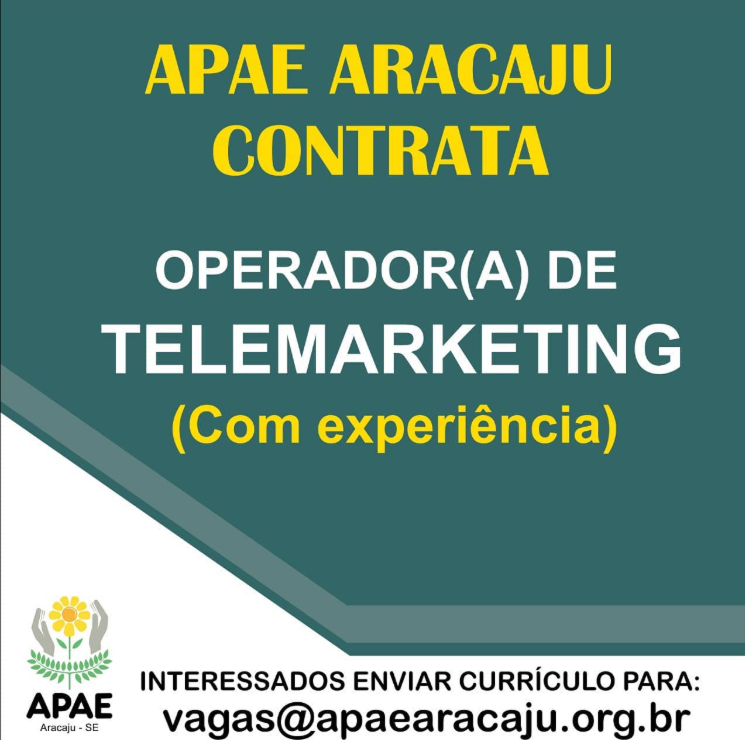 | Chamamento Via Rede Social - A APAE Aracaju oferece vaga de emprego para Operador(a) de Telemarketing com experiência. | 05/02/2020 |