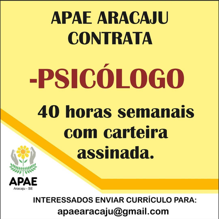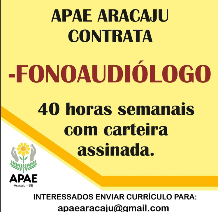 | Chamamento Via Rede Social - A APAE Aracaju contrata Fonoaudiólogo | 15/04/2019 |