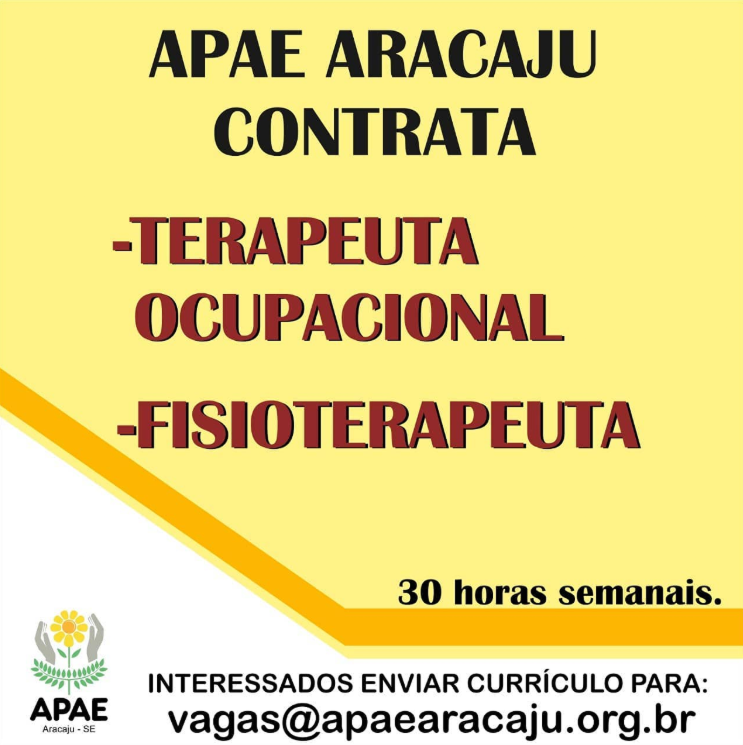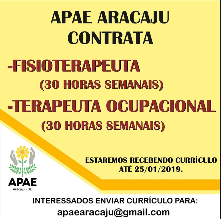 | Chamamento Via Rede Social - A APAE Aracaju oferece vaga de emprego para Terapeuta Ocupacional, com 30 horas semanais. | 18/02/2020 |