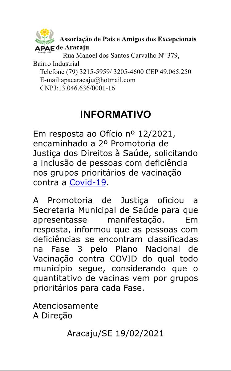 Profissionais da saúde da Apae Aracaju já estão vacinados contra Covid-19