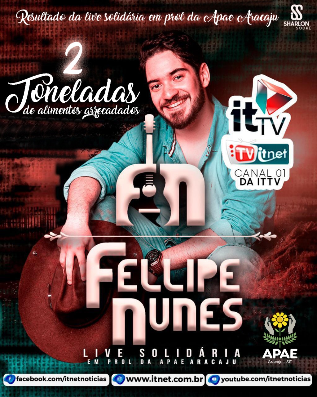 Live solidária de Fellipe Nunes arrecada 2 toneladas de alimentos para a Apae Aracaju