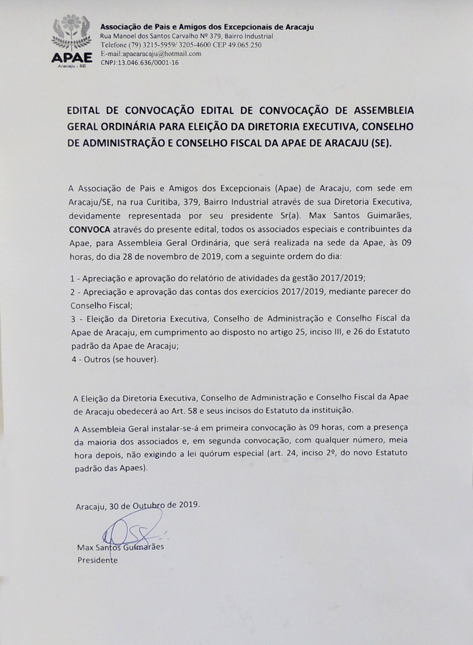 Apae Aracaju lança edital para eleições da nova diretoria da entidade